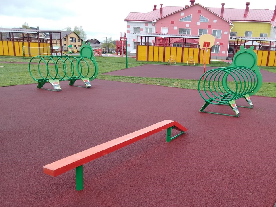 На территории детского сада расположена спортивная площадка с оборудованием по развитию основных видов движений (бега, ходьбы, метания, прыжков (яма для прыжков в длину); оборудованием для обучения детей элементам спортивных игр