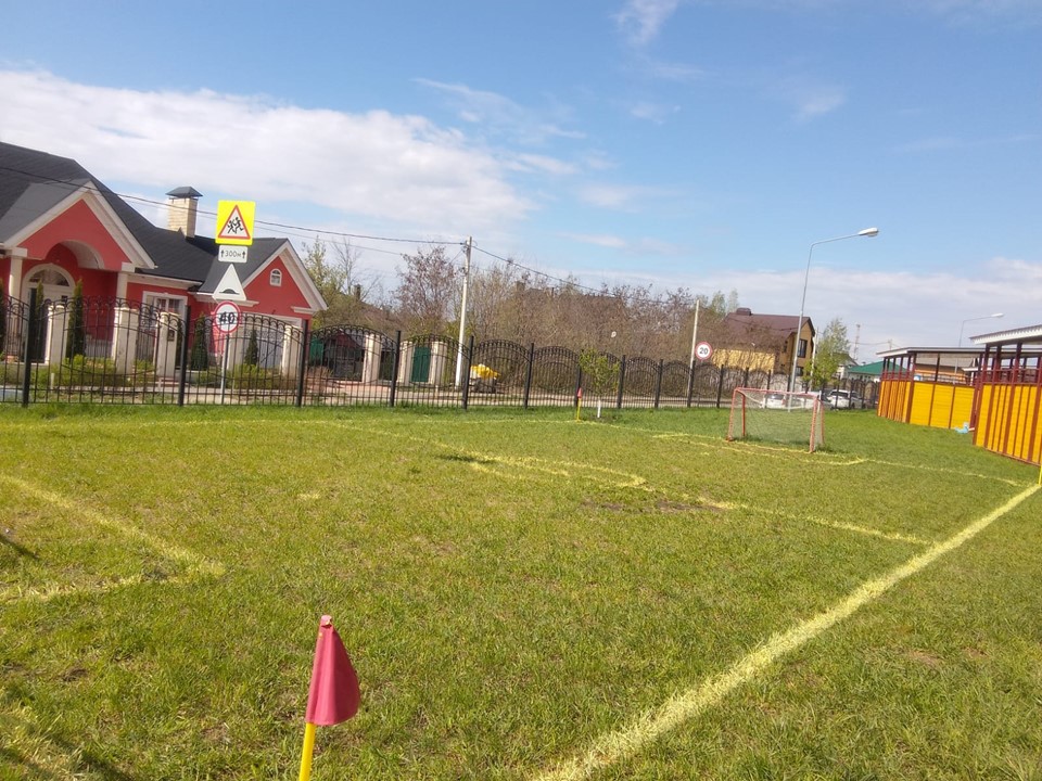 По обучению воспитанников спортивной игре футбол на территории детского сада оборудовано футбольное поле. Для минимизации рисков и неудобств футбольное поле имеет специальные жесткие сетчатые ограждения.
