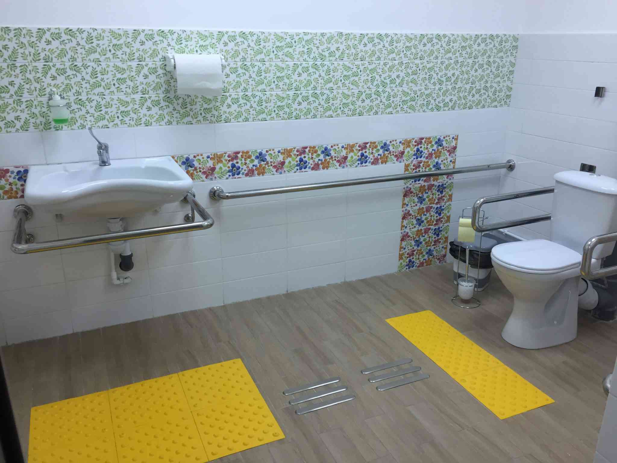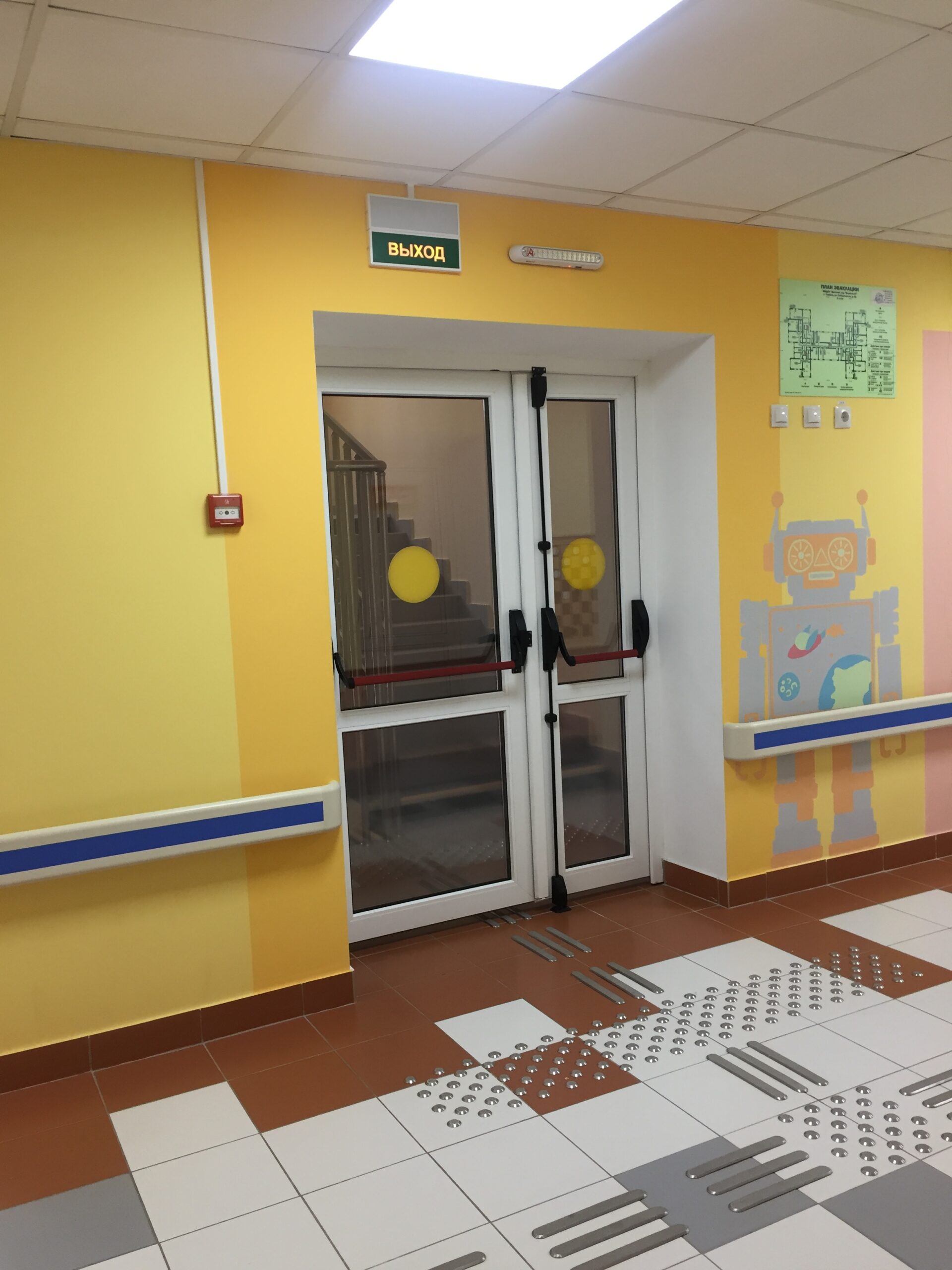 · травмобезопасные перила и пандусы с нескользящим покрытием,